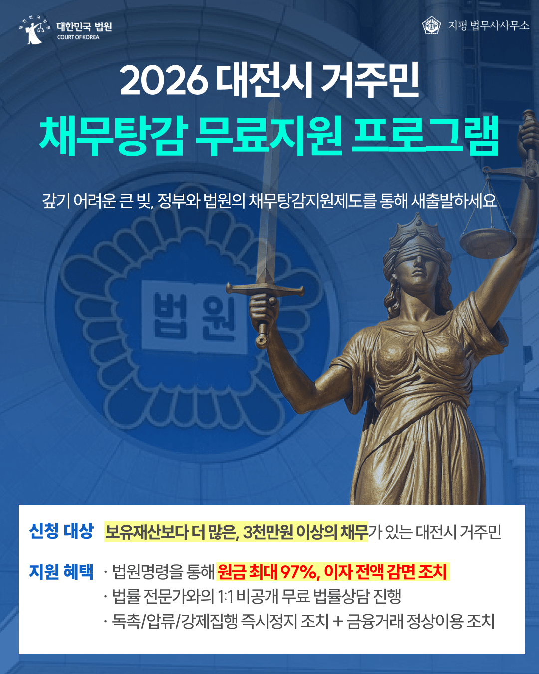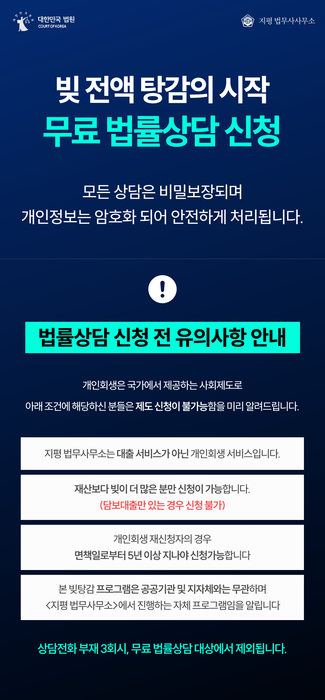 ※ 최소 3천만원 이상이어야 무료법률상담 지원가능합니다